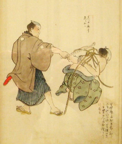 Finalement, la manière dont le Nawashi attachait le prisonnier et les cordes qu’il utilisait donnaient beaucoup de renseignements : son rang social, son crime, son sexe, son âge, sa profession…