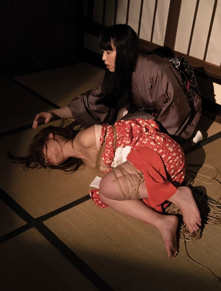 Une fois l’adversaire capturé, c’est les techniques de KIMBAKU, qui sont utilisées pour immobilisé le capturé pour le transfert, la torture et le châtiment corporel des prisonniers. Le Kimbaku, à au fil du temps, évolué vers un Art plus tôt qu’une technique de combat, pour devenir le Shibari. Celui-ci était donc uniquement pratiqué par une élite formée à cette technique et nommée les Nawashi (Nawa = corde / Shi = Maître) . Selon le statut au sein de la société japonaise, l’attache pratiquée sur le captif était différente et permettait au premier coup d’œil de distinguer les nobles, les samouraïs ou les gens du peuple. Dans la même idée, l’entrelacement des cordes et leurs motifs permettaient par exemple d’indiquer la raison de l’arrestation.